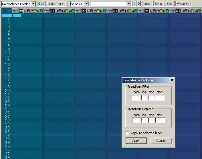 Angelus : New improvement in pattern edition by alk: Transform pattern. Now you can replace any of the values of the row (notes, instruments, machines and/or parameters) in the pattern that match your selection in the Transform Filter automatically without doing it one by one. Take a look at the following screenshot: